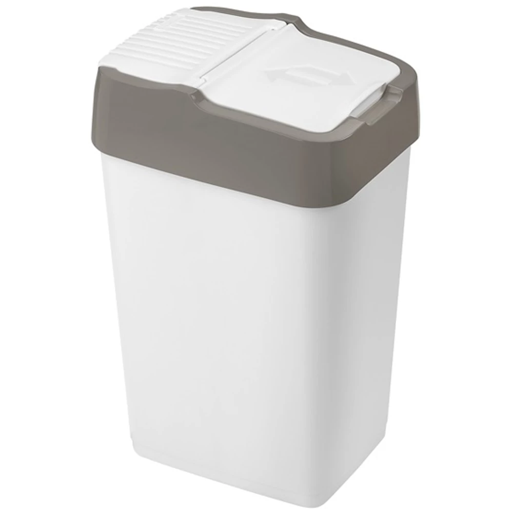 - Biztonságos zsákrögzítés: A levehető keretes fedél szorosan rögzíti a zsák peremét, így az nagyobb súly alatt sem csúszik be a kuka aljára.