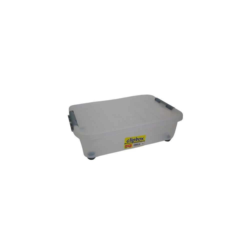A clippes tető szorosan illeszkedik, így védi a tartalmat a portól és szennyeződésektől. A 4 keréknek köszönhetően a doboz könnyedén mozgatható, még megtöltve is – ideális nagyobb mennyiségű ruhák, játékok, cipők vagy könyvek tárolására.