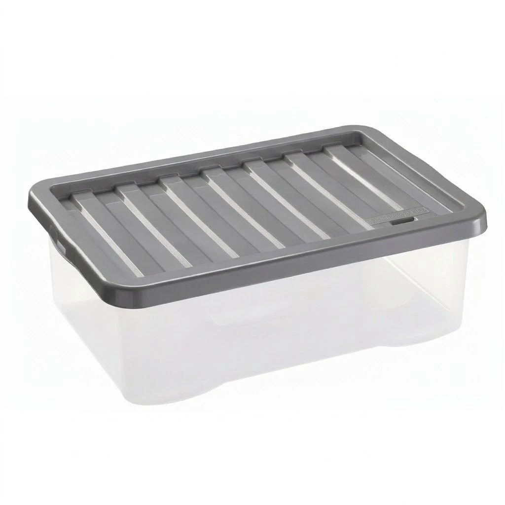 Bár 30 literes űrtartalommal bír, a doboz mindössze 18 cm magas, így a 60x40 cm-es alapterületet vízszintesen használja ki. Kiváló választás alacsonyabb polcközökbe vagy az ágy alá szezonális textíliák, cipők és játékok számára. Az átlátszó testnek köszönhetően a tartalom azonnal felismerhető, így nem kell minden dobozt előhúznia és felnyitnia a keresgéléshez.