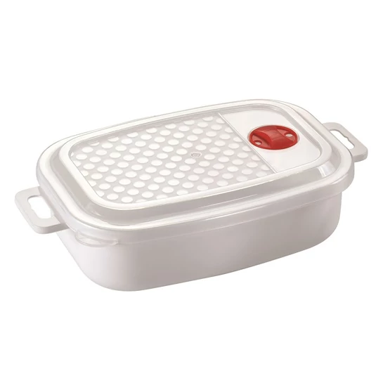 A doboz gőzszelepes tetővel rendelkezik, amely lehetővé teszi a mikrohullámú sütőben való használatot fröccsenés nélkül. A fedél szorosan záródik, így az ételek frissek és szivárgásmentesek maradnak szállítás közben is.