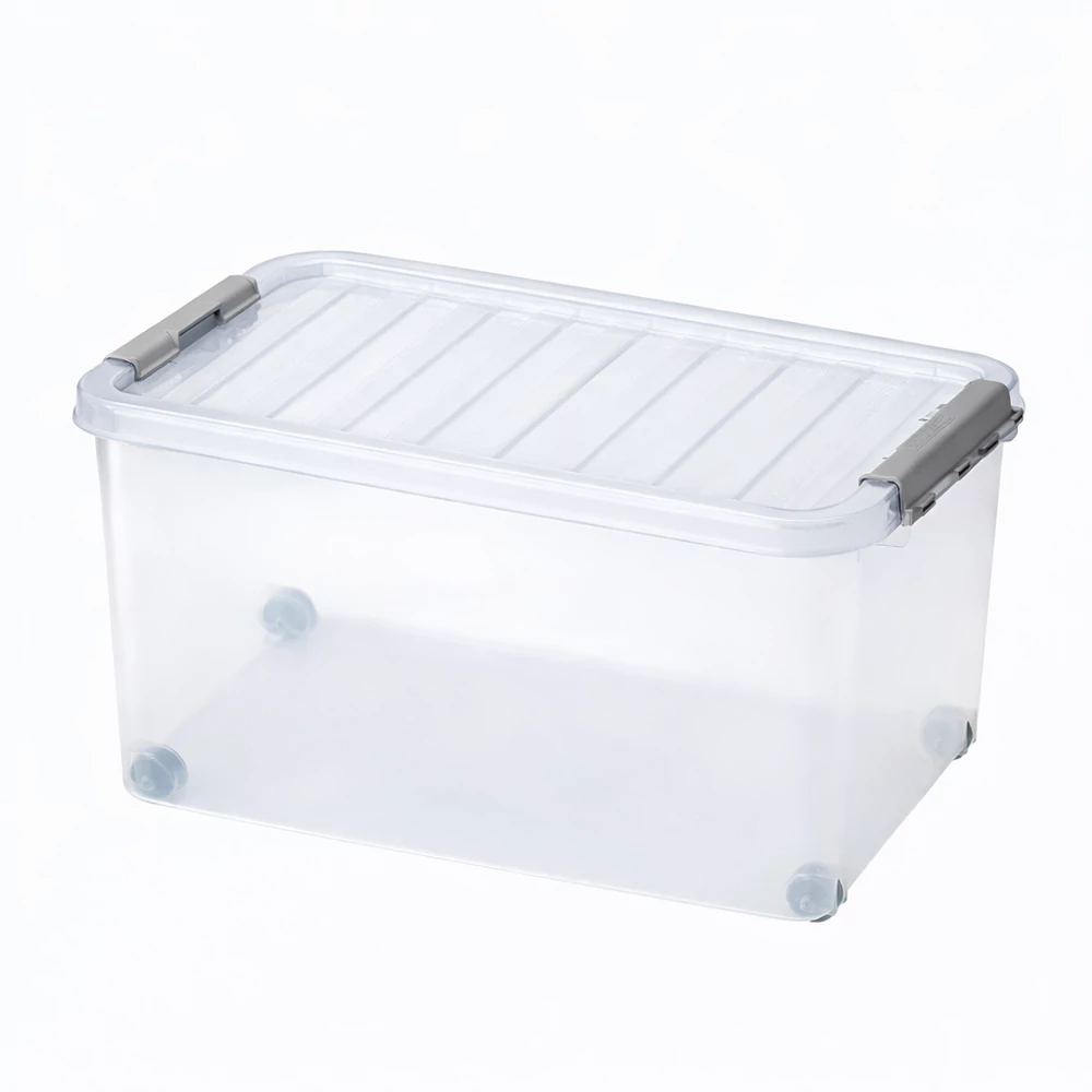 Rend a kerekeken: 45 literes nagykapacitású tárolódoboz, amely görgőivel és biztonsági csatjaival a legnehezebb rendszerezési feladatokat is megkönnyíti.