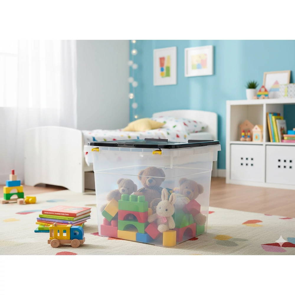 Maximális térkihasználás és intelligens hozzáférés: 36 literes extra mély tárolódoboz, amely oldalra nyíló fedéllel és biztonsági clipzárral teszi egyszerűvé a nagyobb tárgyak rendszerezését.