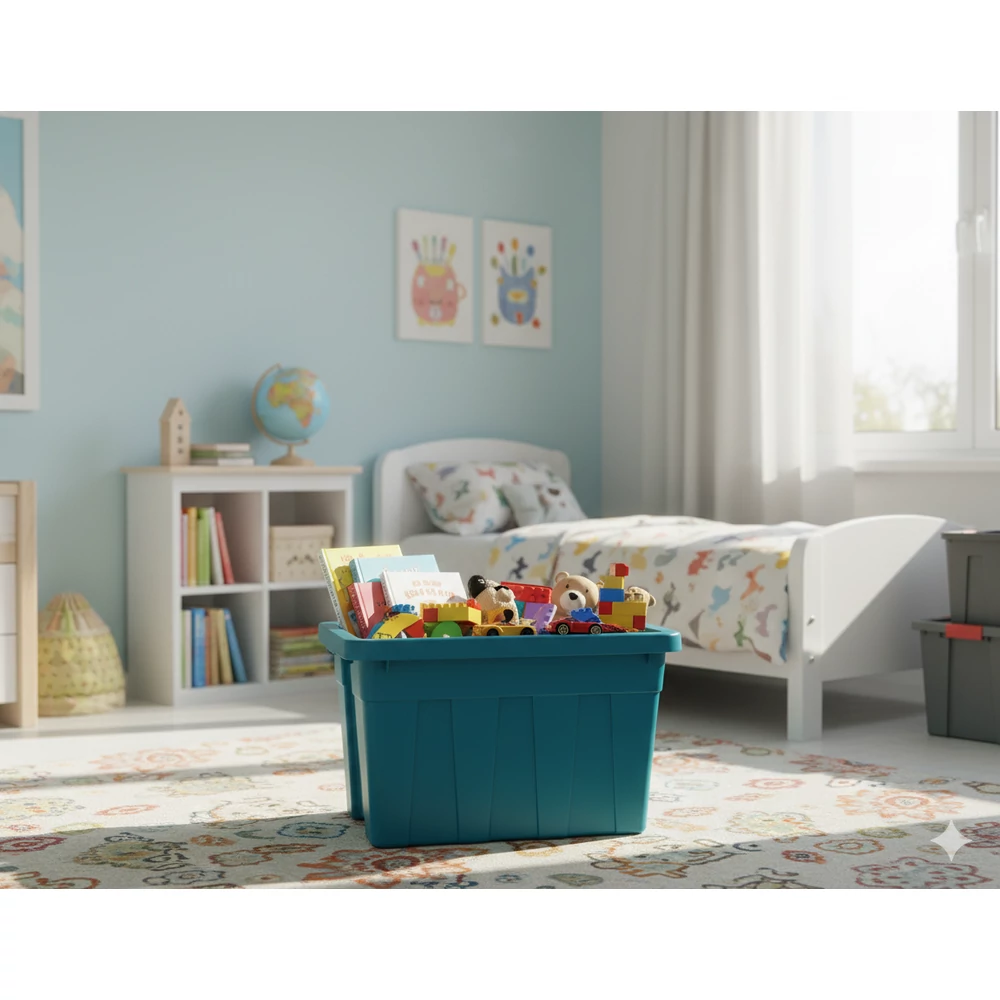 Masszív szerkezet és extra nagy kapacitás: ez a 100 literes óriástároló a legnehezebb logisztikai feladatokra készült, legyen szó otthoni rendszerezésről vagy raktári felhasználásról.