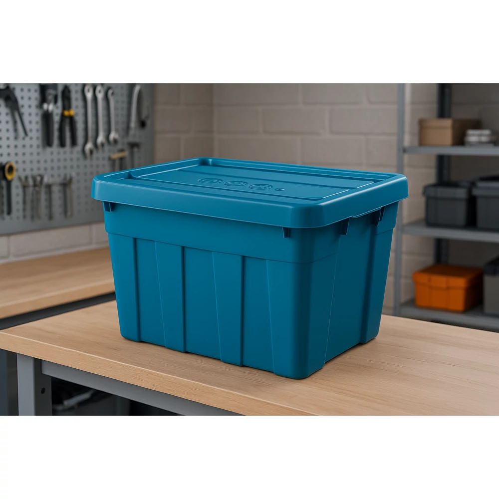 Robusztus és tágas: 65 literes, mély kialakítású tárolóegység időjárásálló fedéllel, amely a háztartástól a műhelyig mindenhol megállja a helyét.