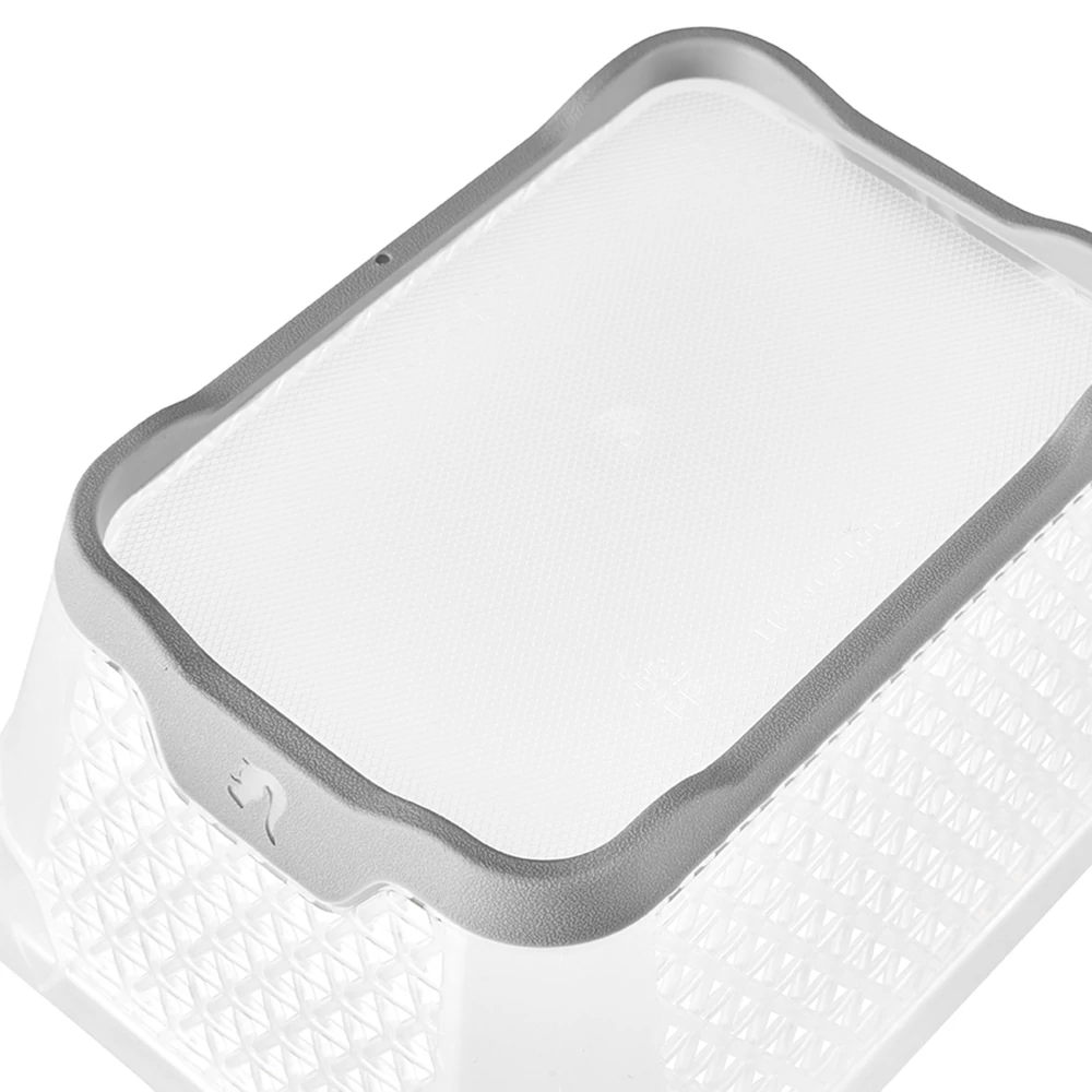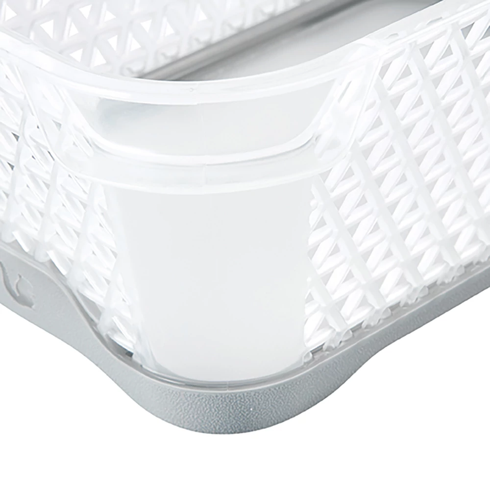 A speciális gumírozás még enyhén ferde vagy fényes felületeken is stabilan tartja a kosarat. A fiók kinyitásakor elnyeli a mozgási energiát, így a benne lévő apró tárgyak nem borulnak össze.