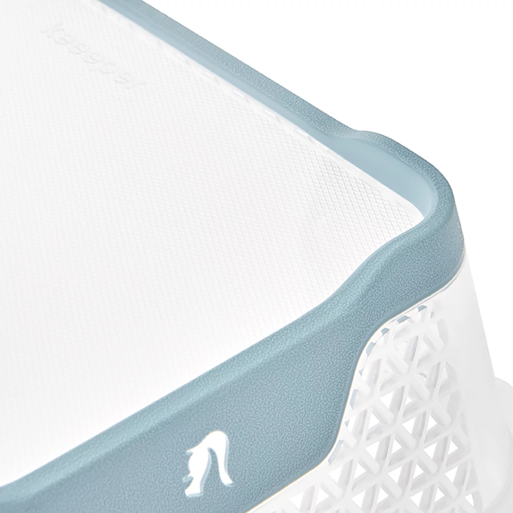 A Keeeper kiváló minőségű, UV-stabil alapanyagokat használ, így a Nordic Blue szín tartós marad, nem fakul ki gyorsan még akkor sem, ha világosabb, napsütötte polcon tárolja.