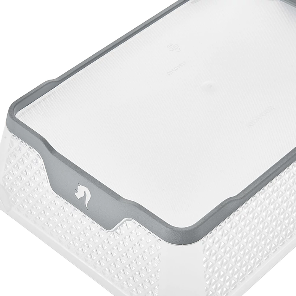 A Plasticbox.hu szakértői ajánlása: Míg a hagyományos műanyag kosarak gyakran elvándorolnak a polcon, a JONAS stabilan áll a helyén a talpba épített csúszásgátló rétegnek köszönhetően. Ez különösen előnyös a konyhában, ahol a nehezebb fűszeres üvegek alatt is fix marad a tároló, de a fürdőszoba nedves felületei sem jelentenek akadályt a tapadásnak.