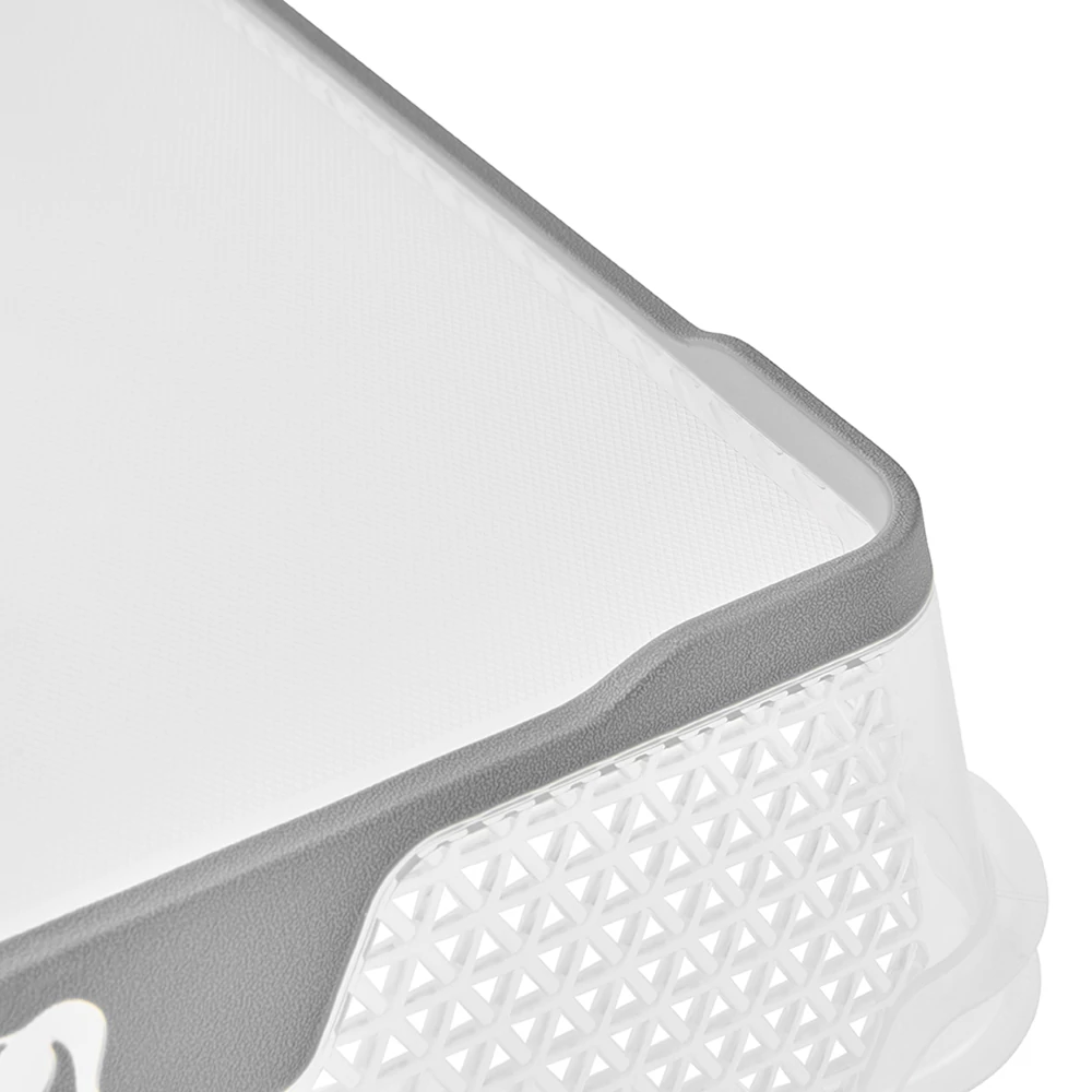- Ergonomikus fogás: A gumírozott perem kényelmes és biztos fogást tesz lehetővé mozgatáskor.