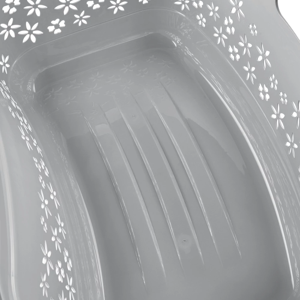 A kosár egyik oldala íves, így kényelmesen rásimul a csípőre. Az extra fogantyúval kombinálva ez a kialakítás leveszi a terhet a vállakról és a gerincről szállítás közben.