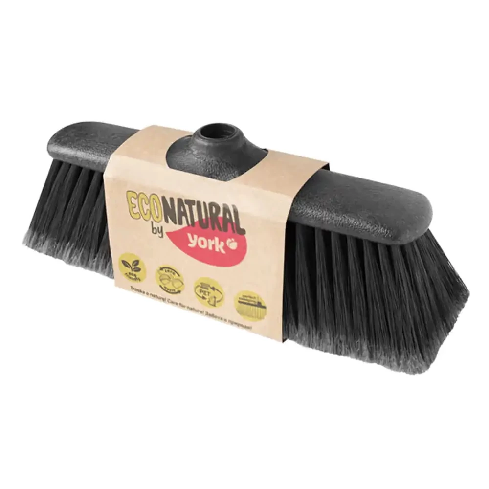 Ökológiai seprű az ECO NATURAL by YORK sorozatból. A seprű talpa és sörtéi újrahasznosított anyagokból készülnek. A speciálisan hasított sörték a legkisebb szennyeződést és port is összegyűjtik. A ferde sörték lehetővé teszik, hogy a seprű elérje a nehezen elérhető helyeket is, és hatékonyan gyűjtse össze a szennyeződéseket. Otthoni használatra tökéletes. Speciális megerősített fogantyúval rendelkezik, 120 cm hosszú.
