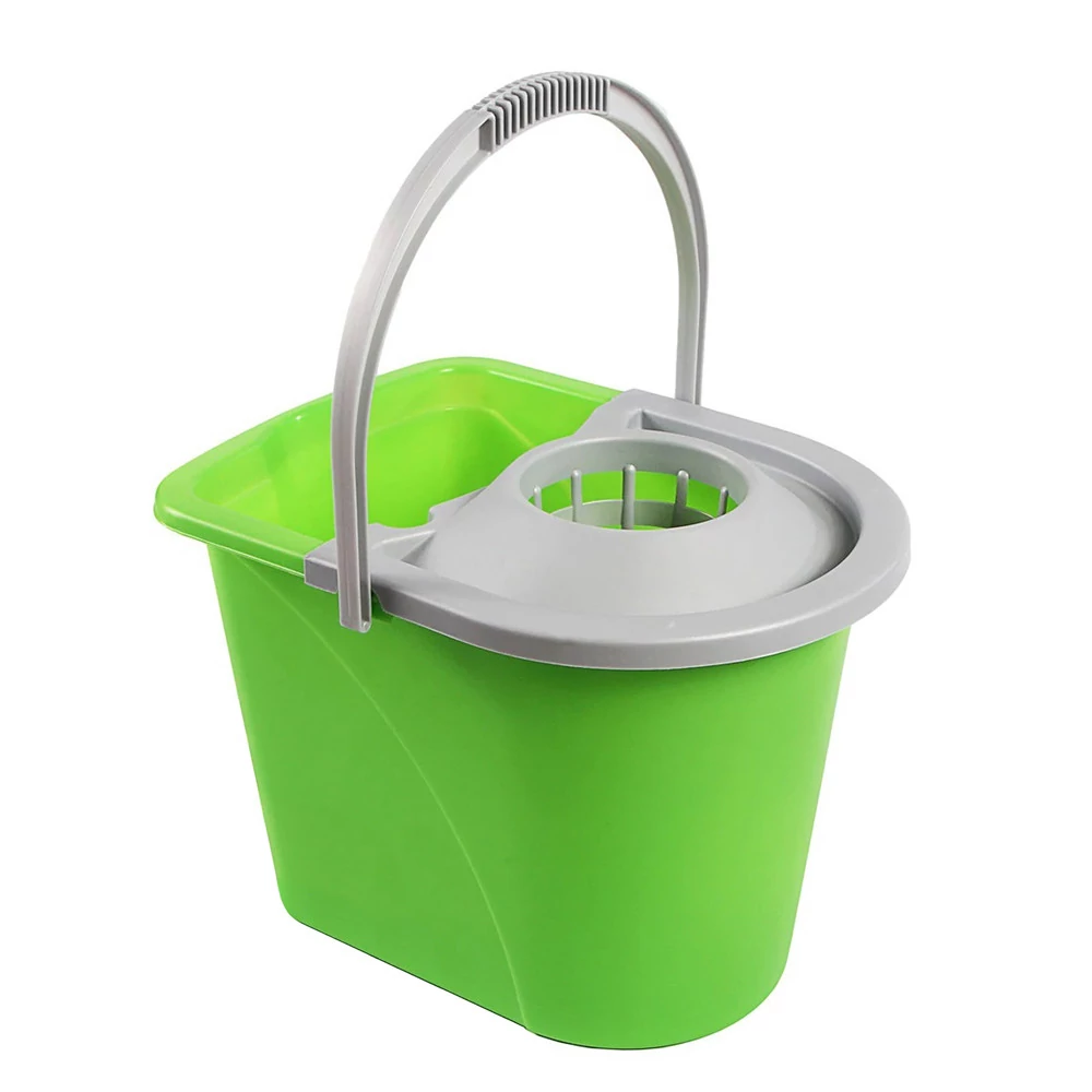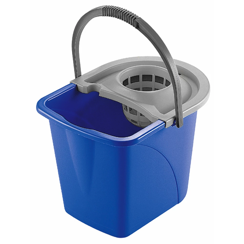 15 literes normál felmosó vödör. A vödör kiöntőperemmel és rögzített fogantyúval rendelkezik.